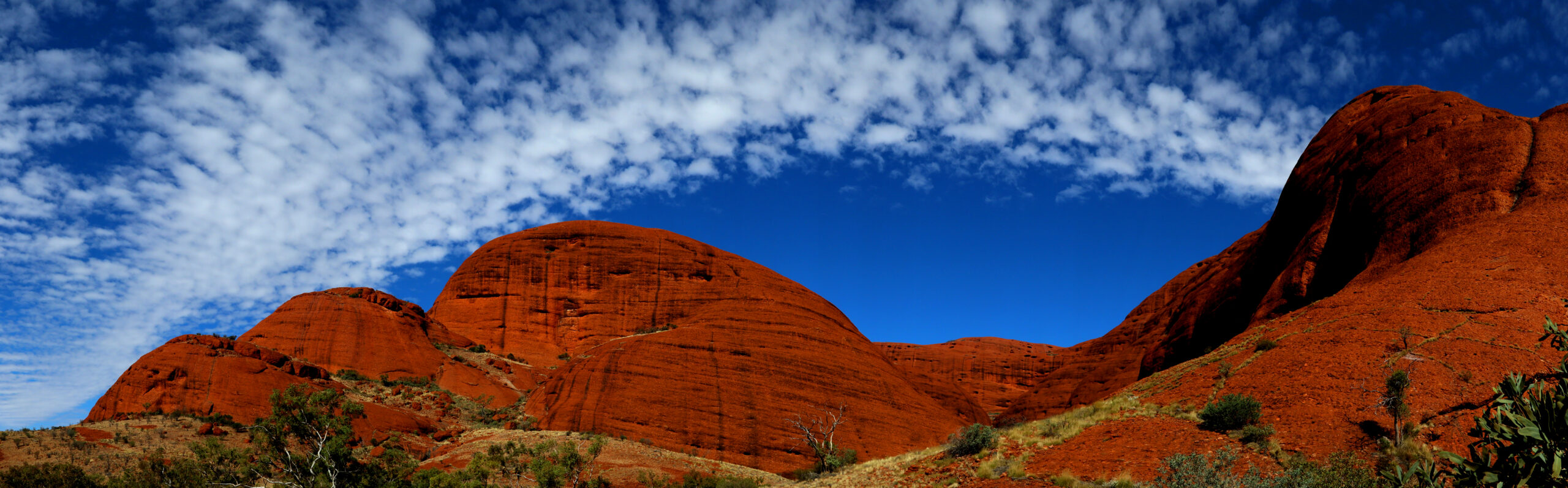 Je ferme les yeux, non pour fuir, mais pour revenir. La terre rouge, chaude, poudreuse de Kata Tjuta contraste avec le ciel céruléen saturé, traversé de longs cirrus effilés. Le vent s’engouffre par rafales longues, frôle la peau, fait bruire le spinifex. Un souffle plus chaud remonte et charge l’horizon, la lumière se tend, l’odeur du pétrichor se fait perceptible.